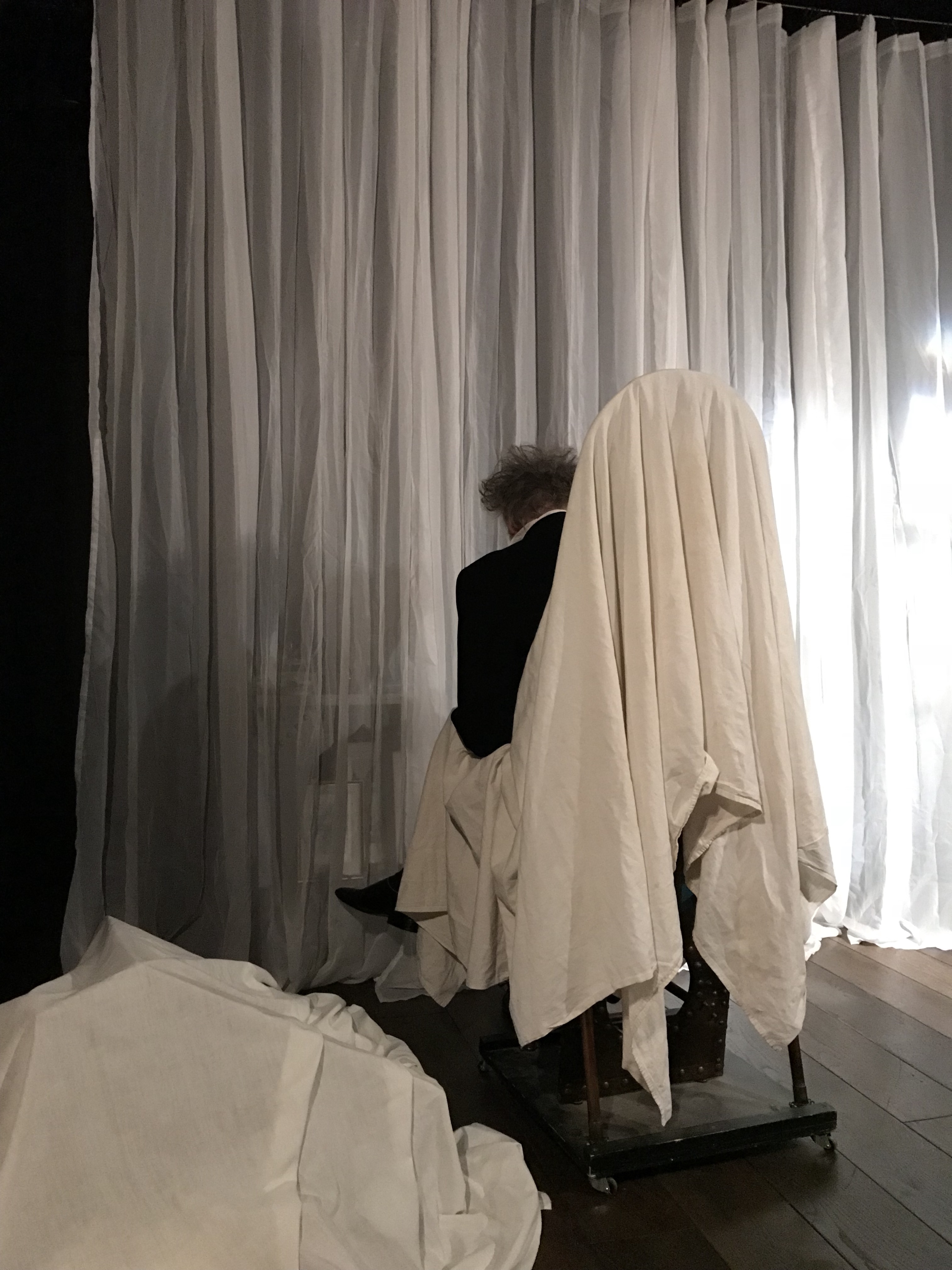 Hier soir, j’ai encore, à nouveau, été pris, été saisi. Bien sûr Frédéric Gray était assis quand nous sommes entrés dans la salle, bien sûr le rideau frémissait comme s’il était vivant, bien sûr Christelle Maldague est apparue. Bien sûr nous sommes rentrés dans la compréhension de l’âme de Mary Shelley, de la naissance de Lazarro Spallanzani. Bien sûr j’ai écouté les aphorismes de l’anglaise désinvolte, vu tourner les yeux de l’italien démoniaque.