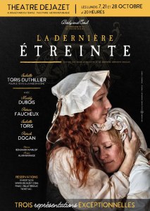 La pièce s’inscrit dans le contexte des derniers jours de Marie Antoinette à la Conciergerie, les grands faits historiques sont connus, assez peu documentés. Sur cette base, Isabelle Toris-Duthillier imagine et romance la relation entre la reine et Rosalie Lamorlière, la servante qui était avec elle pendant ces soixante seize jours, pour aboutir à une dernière étreinte, après la condamnation, avant l’échafaud. En gommant la violence sordide du soupçon et des fouilles, en laissant de côté les complots pour la faire s’évader, pourquoi pas, c’est un parti pris éditorial, on est au théâtre, on n’est pas là pour décrire une réalité historique, on peut fantasmer un moment.