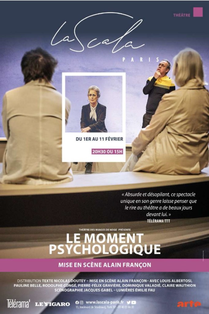 Le Moment Psychologique à La Scala : une eau forte minimaliste et surréaliste, deux alternatives pour un choix de société. Allez découvrir ce très beau texte de Nicolas Doutey finement mis en scène par Alain Françon.