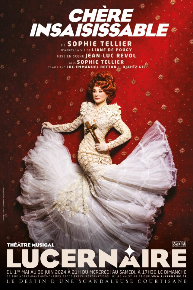 Chère Insaisissable au Lucernaire : Sophie Tellier raconte les quatre vies de Liane de Pougy, l’insaisissable scandaleuse qui a mis Paris à ses pieds. Mise en scène par Jean-Luc Revol, elle est magnifique dans ce seul en scène musical, fin et lumineux