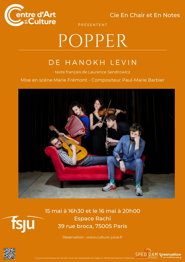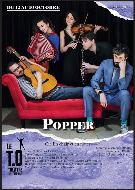 Popper au Théâtre de l’Opprimé : très belle surprise que ce vaudeville grinçant de Hanokh Levin mis en scène par Marie Frémont pour la compagnie En Chair et en Notes. Un triangle où la douleur devient le levier du pouvoir sur l’autre. J’ai savouré, la forme et le fond.