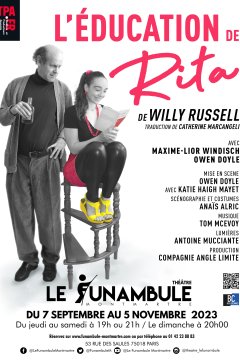 L’éducation de Rita au Funambule Montmartre : la rencontre d’un professeur alcoolique et désabusé et d’une coiffeuse pleine de bon sens et de soif d’apprendre, une chronique sociale caustique et fine, une belle mise en scène d’Owen Doyle, une pièce intelligente qu’on verra avec plaisir